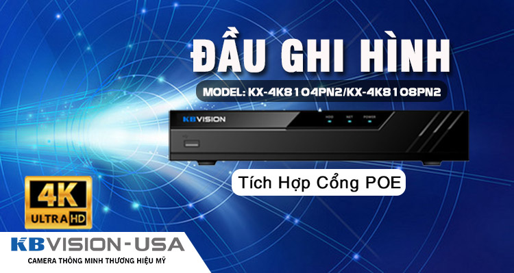 Hiện tại, trên thị trường có nhiều loại đầu ghi được tích hợp công nghệ POE và sản phẩm mà chúng tôi muốn giới thiệu đến các bạn đó chính là đầu ghi IP POE KBVISION. Là một trong những thương hiệu camera thông minh hàng đầu tại Mỹ và các giải pháp an ninh công nghệ cao. Và model đầu ghi IP POE mà chúng tôi muốn giới thiệu với các bạn trong bài viết này là KX-4K8108PN2. Dưới đây là những tính năng cơ bản của đầu ghi IP POE model KX-4K8108PN2:
